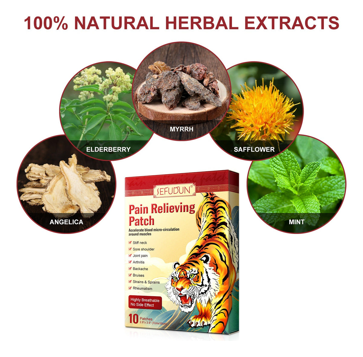 Alivia rápidamente varios dolores asociados con la tensión muscular, dolor de cuello, artritis reumática, hiperostosis, , tensión y esguince, ciática, fibromialgia. (Muy usado en Asia por trabajadores de oficina, que trabajan largas horas del día y tienen tensiones en lumbares y cuellos).